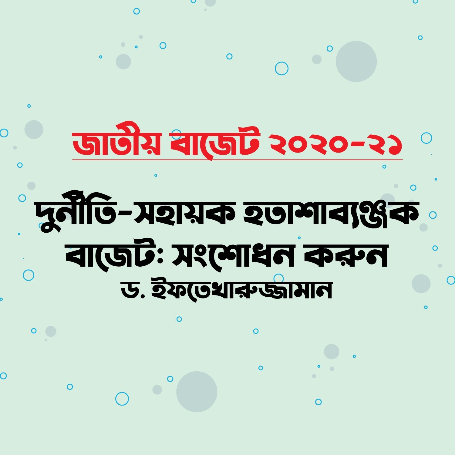 করোনাভাইরাস উদ্ভূত মহামারি, যাকে প্রধানমন্ত্রী জাতীয় দুর্যোগ আখ্যায়িত করেছেন, তার মোকাবিলায় সকল পর্যায়ে স্বাভাবিক সময়ের তুলনায় উচ্চতর মাত্রার সুশাসন, দুর্নীতি প্রতিরোধ, স্বচ্ছতা ও জবাবদিহিতার অপরিহার্যতার প্রতি আমরা সংকটের শুরু থেকেই সরকারের মনোযোগ আকর্ষণ করে চলেছি। এর প্রতিফলন দেখেছি প্রধানমন্ত্রীর ঘোষণায় যে, এই দুর্যোগ মোকাবিলার কোনো কার্যক্রমে দুর্নীতি সহ্য করা হবে না। অথচ দুর্যোগকালীন জাতীয় বাজেটে তার সম্পূর্ণ বিপরিতমুখী সরাসরি দুর্নীতি-সহায়ক হতাশাব্যঞ্জক অবস্থান ঘোষিত হলো।