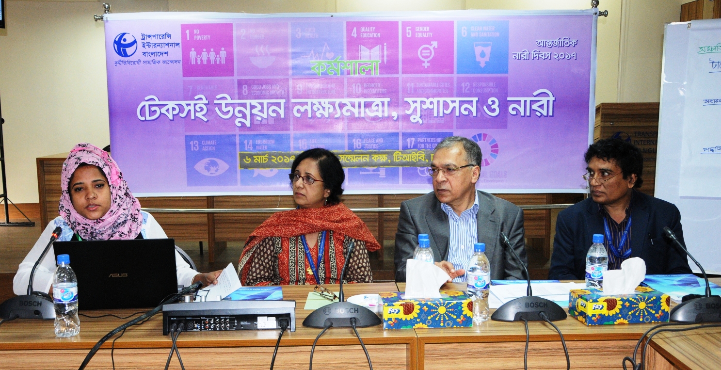 ঢাকা, ৬ মার্চ ২০১৭: আন্তর্জাতিক নারী দিবস ২০১৭ উপলক্ষে আজ সকালে টিআইবি’র উদ্যোগে নারী উপজেলা নির্বাহী অফিসারবৃন্দের (ইউএনও) অংশগ্রহণে অনুষ্ঠিত এক কর্মশালায় টিআইবি’র নির্বাহী পরিচালক ড. ইফতেখারুজ্জামান নারী কর্মকর্তাদের টেকসই উন্নয়ন লক্ষ্যমাত্রার জেন্ডার বিষয়ক লক্ষ্য ৫ ও সুশাসন বিষয়ক লক্ষ্য ১৬ বাস্তবায়নে কার্যকর ভূমিকা পালনের আহ্বান জানান। টিআইবি’র ধানমন্ডিস্থ কার্যালয়ের মেঘমালা সম্মেলন কক্ষে অনুষ্ঠিত ‘টেকসই উন্নয়ন লক্ষ্যমাত্রা, সুশাসন ও নারী’ শীর্ষক এ কর্মশালায় দেশের সকল প্রশাসনিক বিভাগের আটটি উপজেলার আট জন নারী উপজেলা নির্বাহী অফিসার অংশগ্রহণ করেন। উল্লেখ্য, মন্ত্রিপরিষদ বিভাগের প্রশাসনিক অনুমোদনের প্রেক্ষিতে টিআইবি উক্ত কর্মশালার আয়োজন করে।