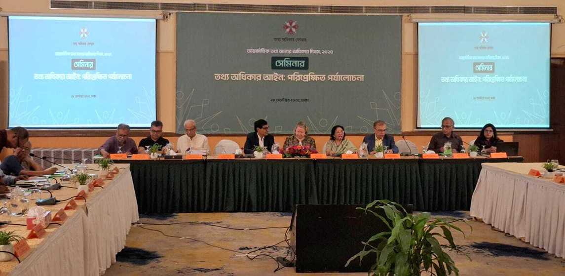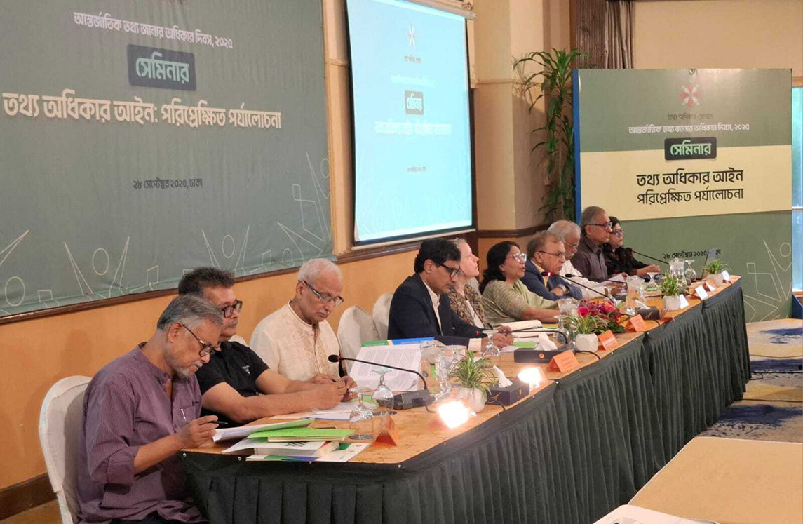 Marking the International Day for Universal Access to Information, the seminar titled “Right to Information Act, 2009: Contextual Analysis” was organized in alignment with the international theme, “Ensuring Access to Environmental Information in the Digital Age.” Distinguished civil society members discussed the current state of the Right to Information in Bangladesh. The seminar addressed issues such as the need to amend the RTI Act, the ineffectiveness of the Information Commission, the prevailing culture of secrecy, and existing challenges in accessing information. A keynote paper was presented by Ruhi Naz, Deputy Director of Research Initiative Bangladesh.