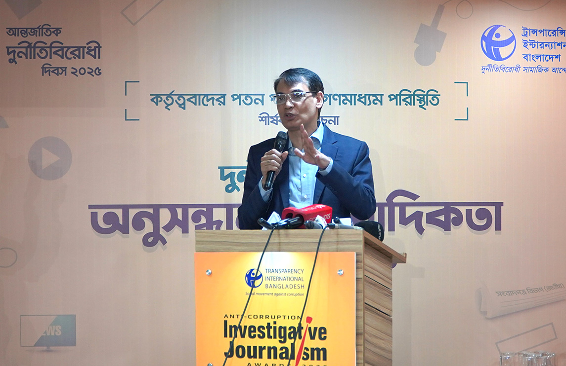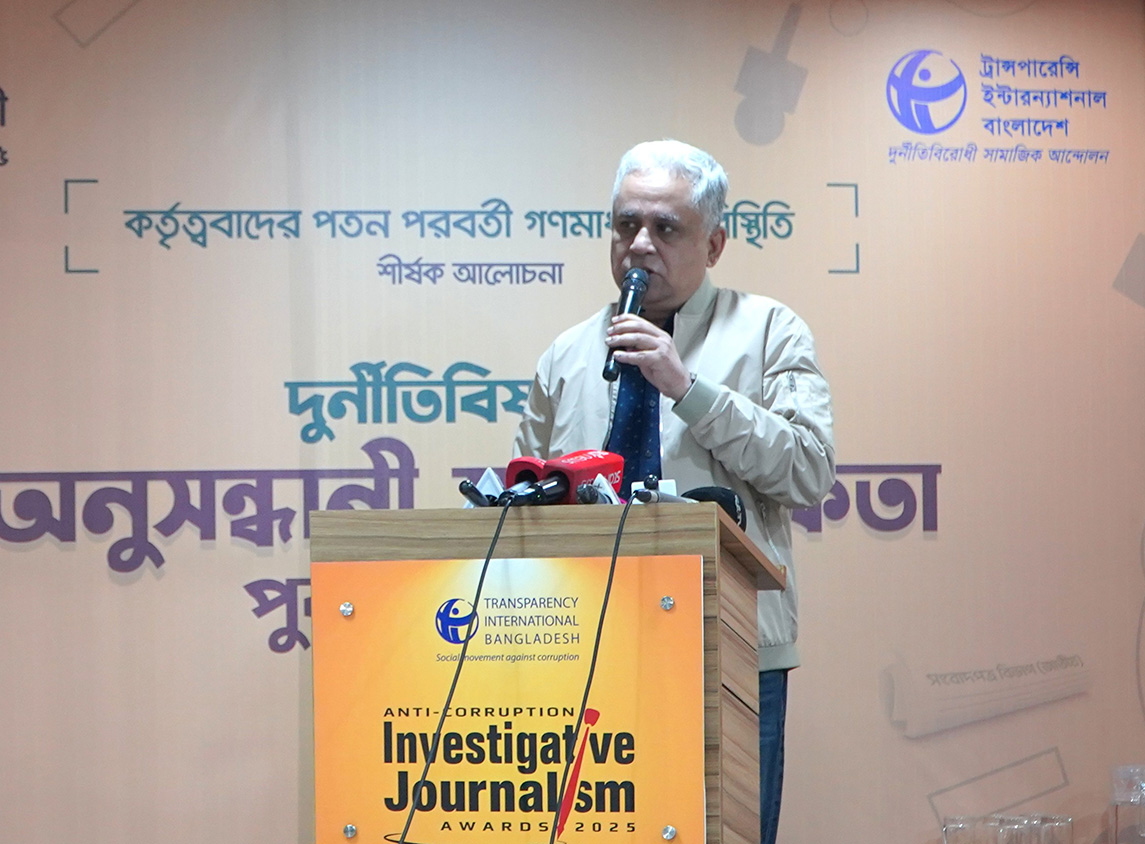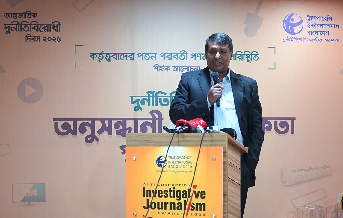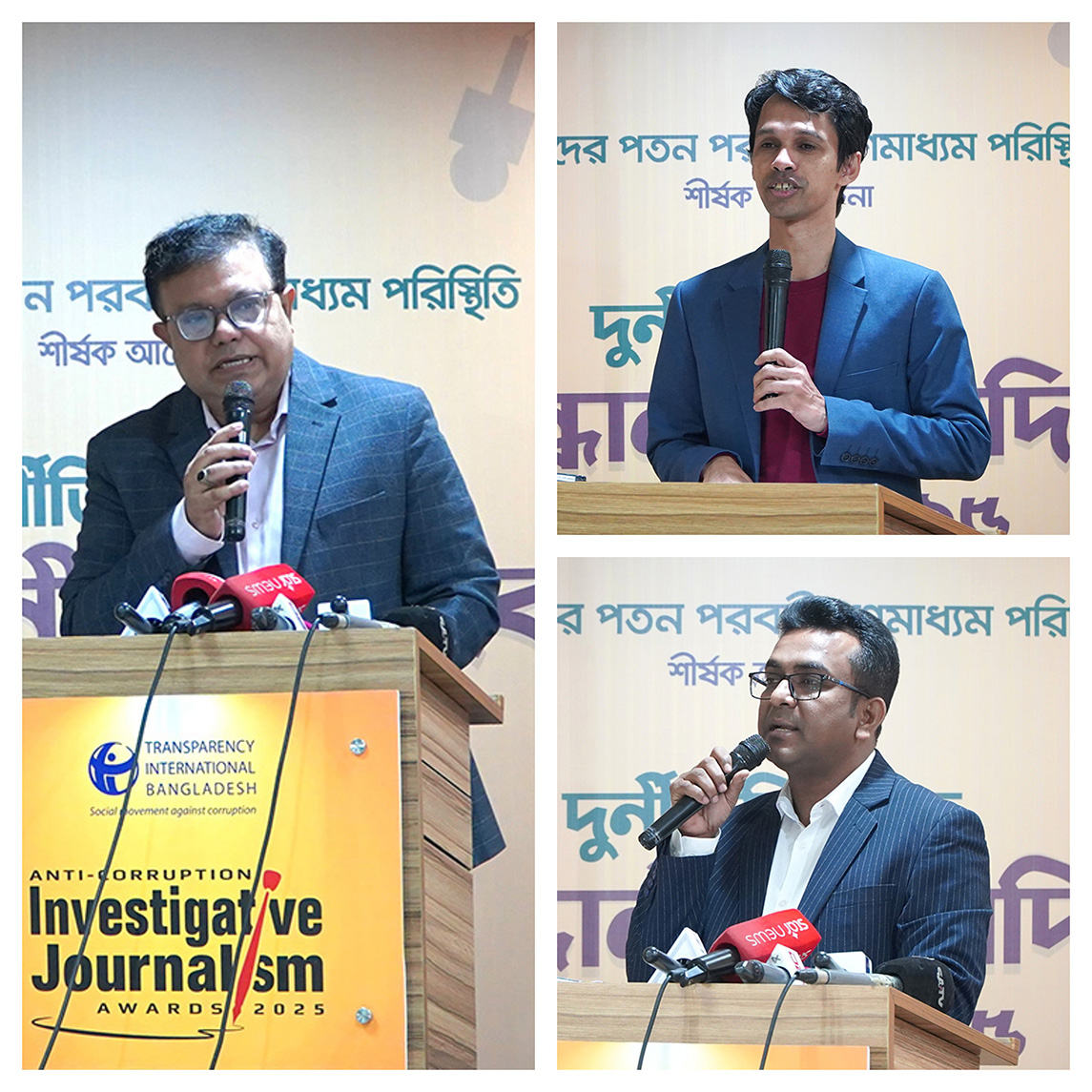 After the discussion session, TIB announced the winners of the Anti-Corruption Investigative Journalism Awards (IJA) 2025. This year, four journalists and one documentary program were honored across different categories. In the Regional Newspaper category, the winners are Faisal Islam, Senior Staff Reporter of Daily Gramer Kagoj (Jashore), and Staff Reporter Ashiqur Rahman Shimul. In the National Newspaper category, the award went to Rashidul Hasan, Senior Staff Reporter of the English daily The Daily Sun. In the Television (Report) category, the winner is Mufti Parvez Nadir Reza, former Special Correspondent of Ekattor Television (currently Head of Input and Planning Editor at Channel One). Each winner received a certificate of recognition, a crest, and a prize of BDT 125,000. In the Television (Documentary Program) category, the winning entry is Searchlight, a documentary program aired on Channel 24. The investigation and presentation were led by Md. Faizul Alam Siddique, former Special Correspondent of the Searchlight team (currently Special Correspondent at Star News). The winning documentary received a certificate of recognition, a crest, and a prize of BDT 150,000.