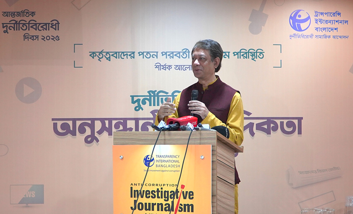 Transparency International Bangladesh (TIB) marked International Anti-Corruption Day (IACD) 2025 with a discussion on "Bangladesh's Media Landscape After the Fall of Authoritarianism" at its Dhanmondi office. The event gathered journalists, media leaders, and civil society representatives to assess press freedom and ongoing reform challenges in the country. The keynote paper was presented by Zafar Sadiq, Deputy Coordinator of TIB’s Outreach and Communication Department. His presentation analyzed the historical trajectory and legal framework of the media in Bangladesh, the challenges facing media institutions and journalism, modes of registration and ownership, and offered an in-depth discussion of the current media environment following the fall of the authoritarian regime.