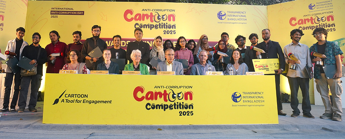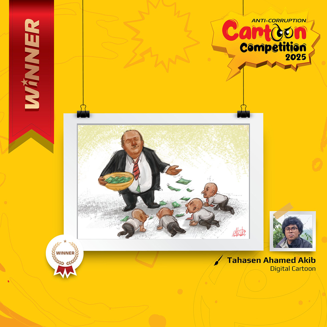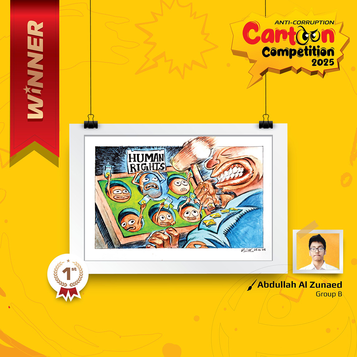 Marking International Anti-Corruption Day (IACD) 2025, the 20th Anti-Corruption Cartoon Competition & Exhibition organized by Transparency International Bangladesh's (TIB), which inaugurated on December 10, 2025. This year's theme, "Corruption & Human Rights," resonated deeply with young artists cartoons, comic strips, and digital artworks, each piece a visual testament to their vision of a corruption-free Bangladesh built on accountability, transparency, and good governance. The young cartoonists approached the theme with remarkable sophistication, using symbolism and satire to expose the intricate connection between corruption and human rights violations. Their drawings laid bare the invisible irregularities embedded across social and administrative structures, demonstrating how corruption inevitably leads to the erosion of fundamental rights.