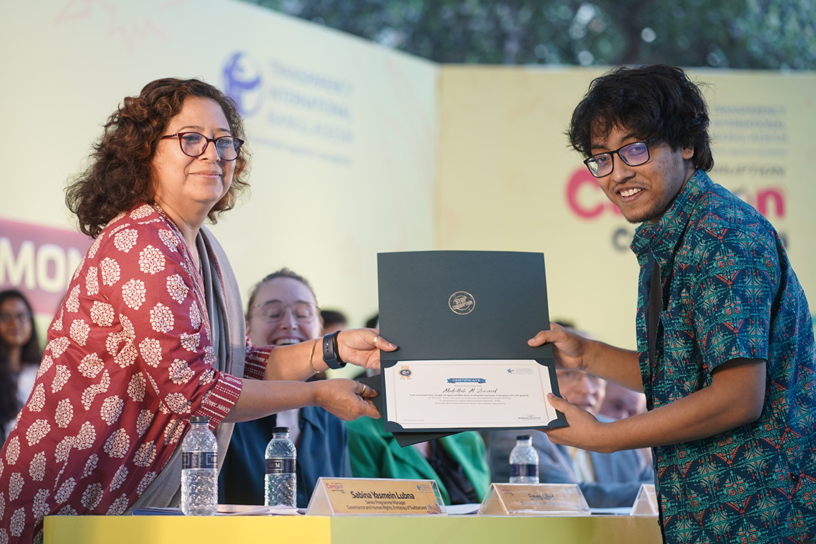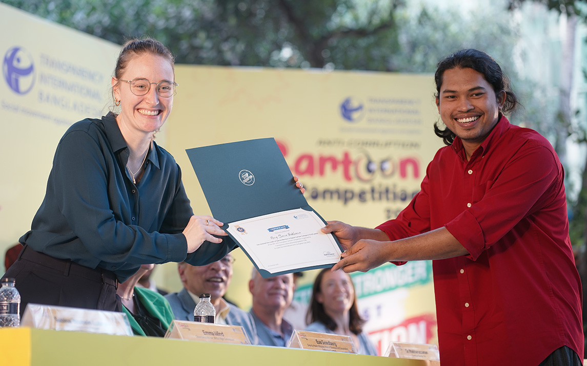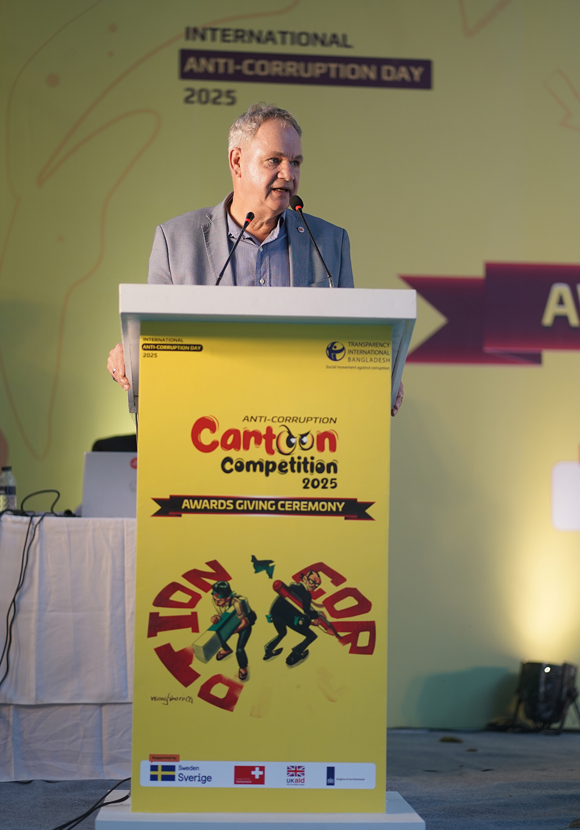 International dignitaries from TIB's donor agencies praised the transformative power of youth-driven creativity. Eva Smedberg, Deputy Head of Mission at the Embassy of Sweden emphasized that youth are highlighting social inequalities through cartoons and expressed confidence that this art form will help win the fight against corruption. Cor Stouten, First Secretary (Political Affairs) at the Embassy of the Netherlands noted how the cartoonists exposed unnoticed injustices, remarking that "wherever there is corruption, there is human rights violation." Emma Wind, Governance Advisor at the British High Commission commended the young artists for revealing invisible irregularities across social structures, while Sabina Yasmein Lubna, Senior Programme Manager-Governance and Human Rights at Embassy of Switzerland in Bangladesh, observed that cartoons can spark change and inspire youth to bring positive transformation to society.
