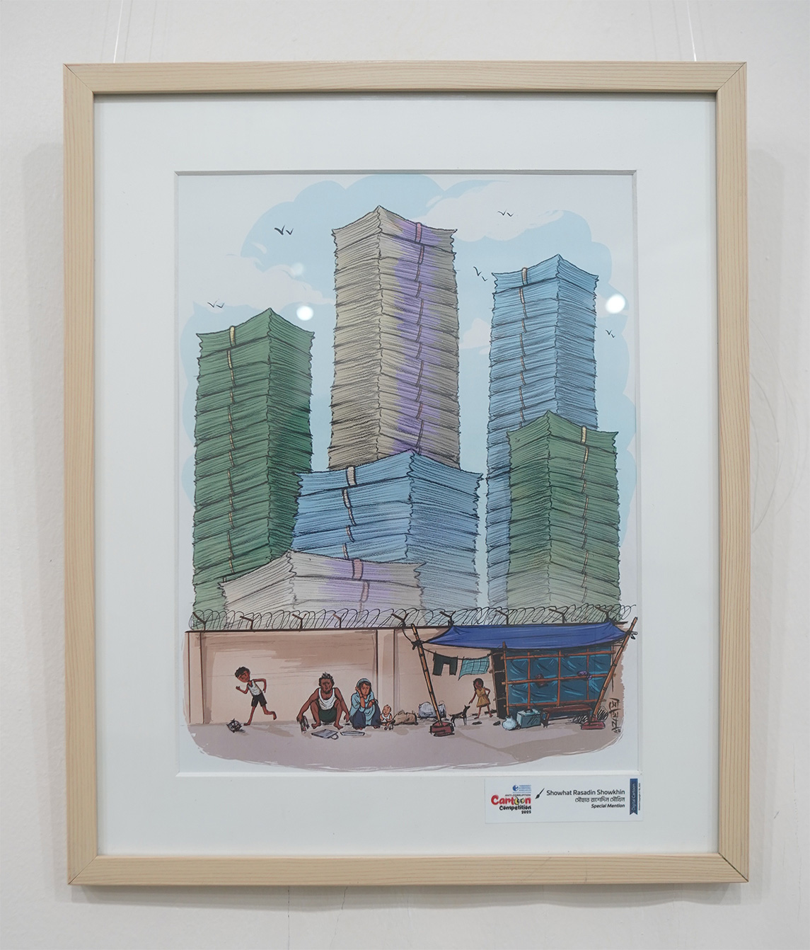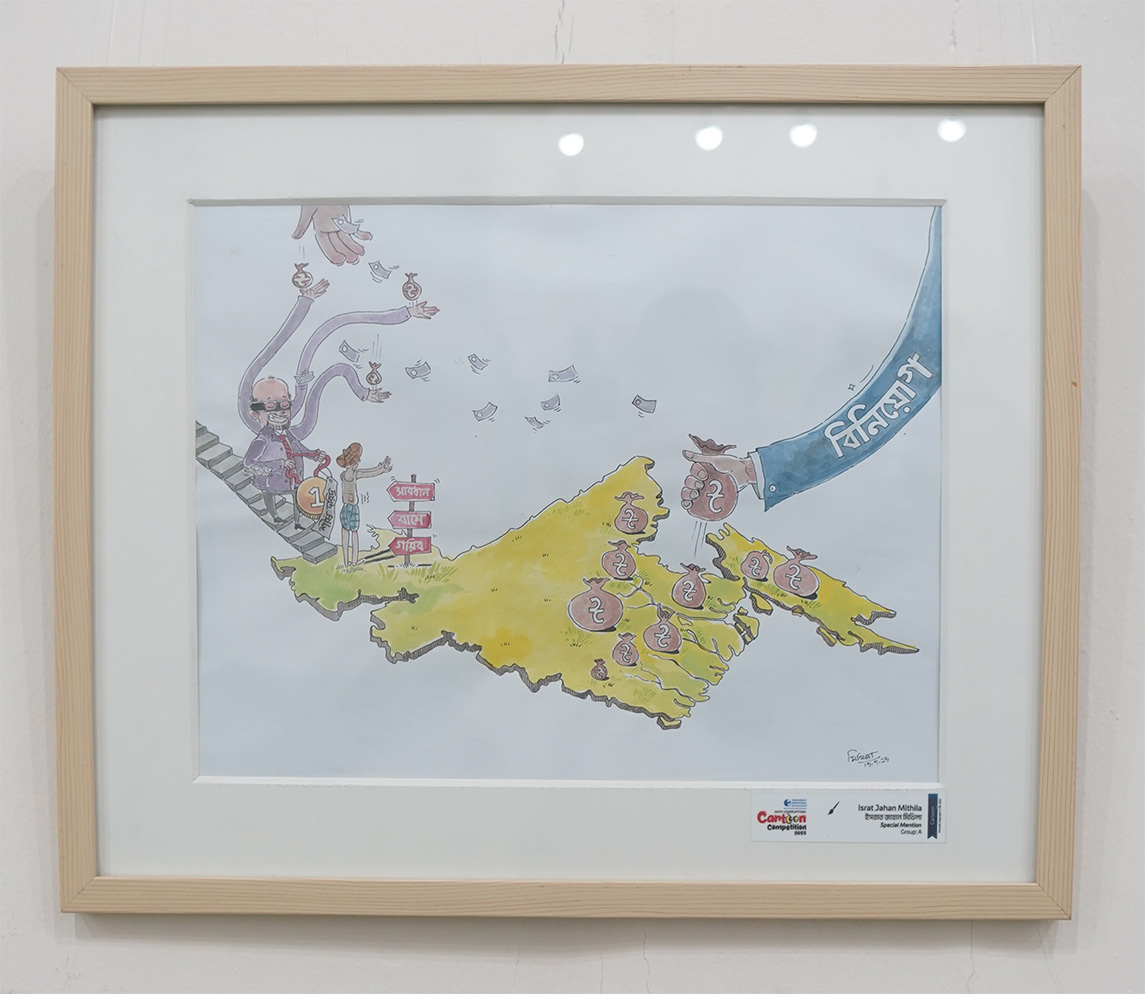 On the 20th year of the competition, TIB received 410 cartoons from 199 artists. Out of these, 339 cartoons were submitted in the two categories of hand-drawn cartoons, 44 in the digital category and 27 in the comic strip category. The exhibition is showcasing a total of 59 cartoons from 42 cartoonists who won the cartoon competition and received special nominations. The winning drawings remain on display at Zainul Gallery, Department of Fine Arts, Dhaka University, from 12:00 p.m. to 7:00 p.m. through December 21, with a virtual gallery available online.