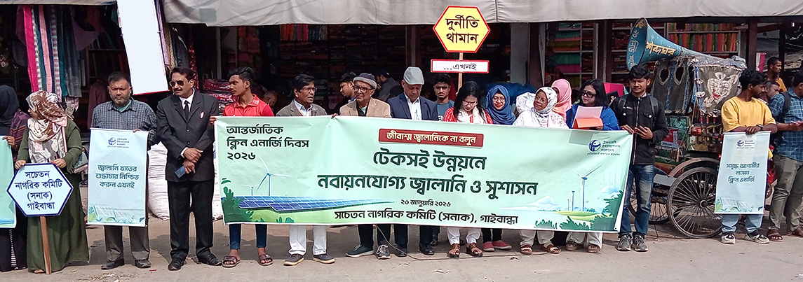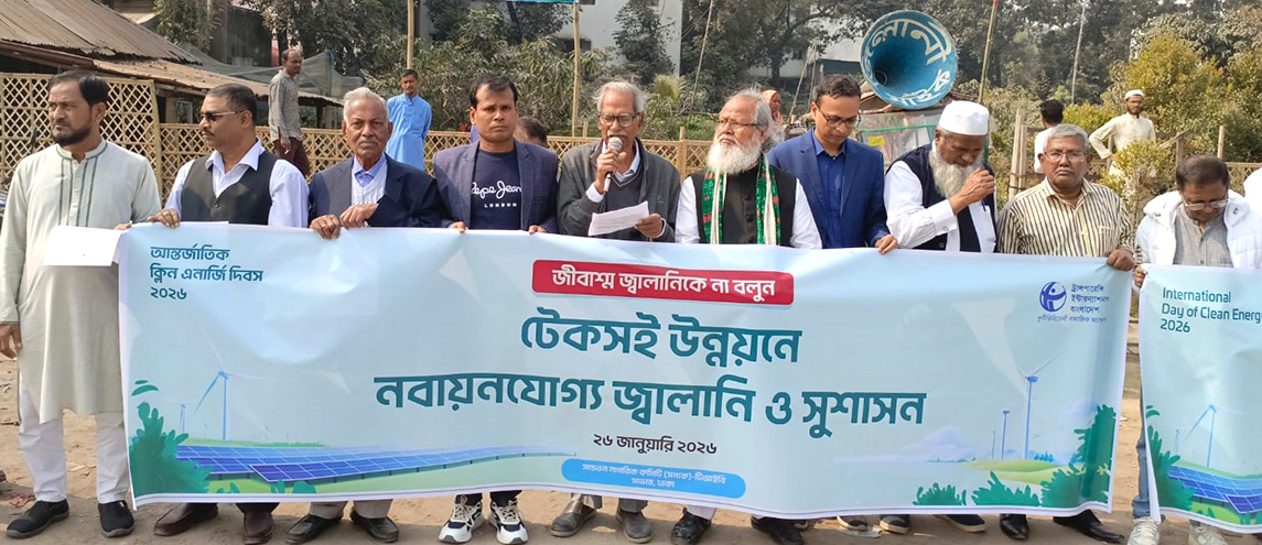 To advance this agenda, TIB placed a set of clear and actionable recommendations before policymakers during the human chain organized on the International Day of Clean Energy 2026. At the program, TIB explicitly called for strong political commitment to gradually reduce dependence on fossil fuels and adopt a time-bound roadmap toward 100 percent renewable energy-based electricity generation by 2050. TIB also advocated establishing independent oversight and regulatory authority to safeguard integrity in the energy sector. TIB prioritized strengthening the institutional and operational autonomy of the Sustainable and Renewable Energy Development Authority. The organization further called for aligning all energy-related policies under a unified renewable energy framework, simplifying net metering, introducing feed-in tariffs, ensuring transparency in project approval and land acquisition processes, and expanding investment in renewable energy research and innovation. Utilizing land from cancelled coal and LNG projects for renewable installations, particularly solar power, was highlighted as a practical and forward-looking measure.