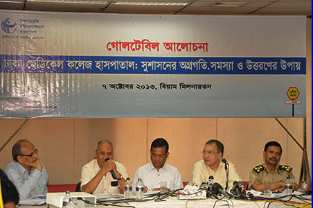 The findings shows the absence of long term-plan, lack of transparency and accountability, lack of proper monitoring and evaluation, procrastination in service delivery, absence of regular transfer of hospital staff and absence of Information Officer as major hindrances in establishing good governance at DMCH. Besides, the study also identified a number of challenges including negligence of doctors in maintaining their duty roaster; uncontrolled entry of medical representatives, forcing patients to conduct medical tests from chosen diagnostic centers and clinics; bribery to get services ranging from 20-1000 Tk, bribery in procurement and payment and lack of accountability among doctors, nurses and other staff were responsible for inadequate healthcare facilities.