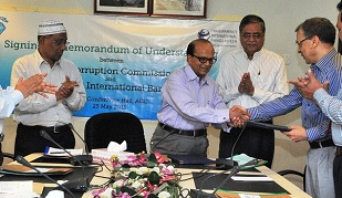 Transparency International Bangladesh (TIB) and the Anti-Corruption Commission (ACC) on 25 May 2015 signed a Memorandum of Understanding (MoU) with the objective of strengthening anti-corruption prevention activities in the country. At a simple ceremony held at the mini conference hall of ACC head office in Segunbagicha, TIB’s Executive Director Dr. Iftekharuzzaman and ACC’s Director General (DG), Dr. Md Shamsul Arefin signed the two-year MOU on behalf of their respective organizations. ACC Chairman Md. Badiuzzaman, two Commissioners, Secretary and senior officials of both TIB and ACC were present during the signing.During the signing ceremony, speakers agreed that the process of curbing corruption will be more dynamic and easy if the corruption can be prevented effectively. The MOU stipulates undertaking joint activities to implement and monitor anti-corruption campaigns at upazila and district levels involving members of Satata Sangha (integrity association) to aware people about corruption marking the International Anti-Corruption Day on December 9. Collaboration also covers the areas of research and campaign, including TIB’s two new initiatives: Report Corruption and Advice and Legal Advocacy Centre (ALAC), where ACC will take necessary measures in view of public complaints against corruption received through TIB.It may be mentioned here that TIB played the lead catalyst role in the enactment of the Anti-Corruption Act , 2004 and setting up of the Anti-Corruption Commission (ACC).