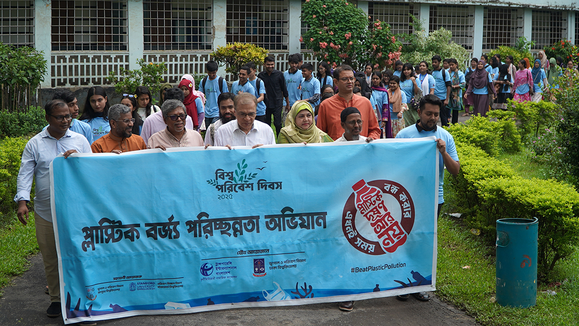 This year’s local theme was: “Everyone, Together Now, to End Plastic Pollution,” aligning with the global theme: “Beat Plastic Pollution.” Students from the University of Dhaka, Jagannath University, and Stamford University participated in the event.