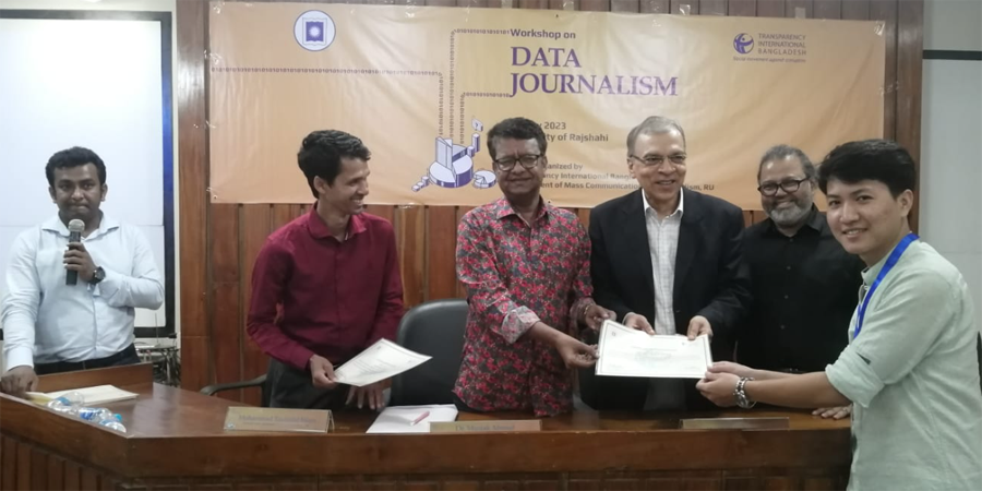 Transparency International Bangladesh (TIB), in collaboration with the Department of Mass Communication & Journalism (MCJ) at Rajshahi University, recently hosted its second Workshop on Data Journalism. The workshop shed light on the untapped potential of data journalism as a powerful tool for journalists to uncover corruption, ensure accountability, and address challenges such as state overreach and self-censorship in Bangladesh.