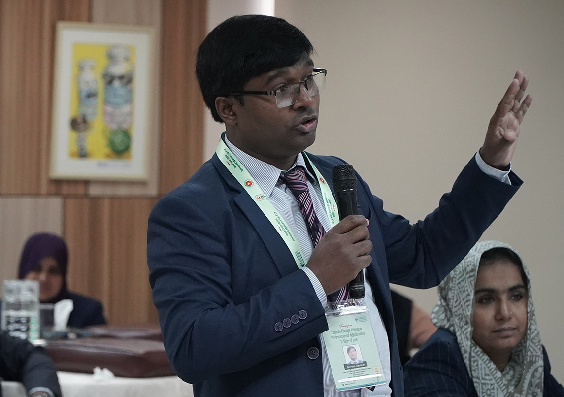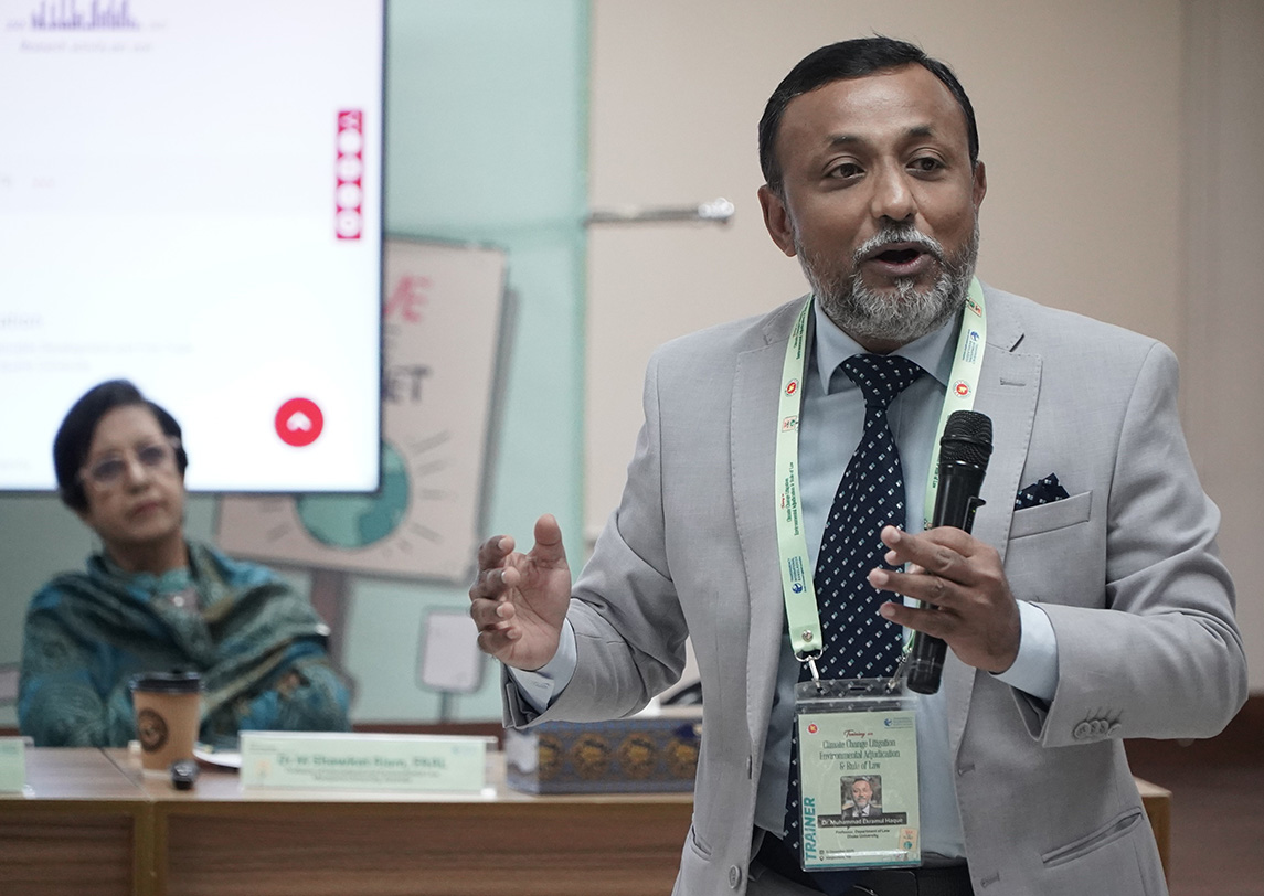 Throughout the day, Professors Alam and Haque guided participants through the complexities of constitutional and international environmental law, rule of law principles, and good governance frameworks. They examined climate change litigation practices globally and in South Asia, and explored judicial remedies within Bangladesh's legal system. More significantly, they facilitated candid discussions about the practical challenges judges encounter in their courtrooms.