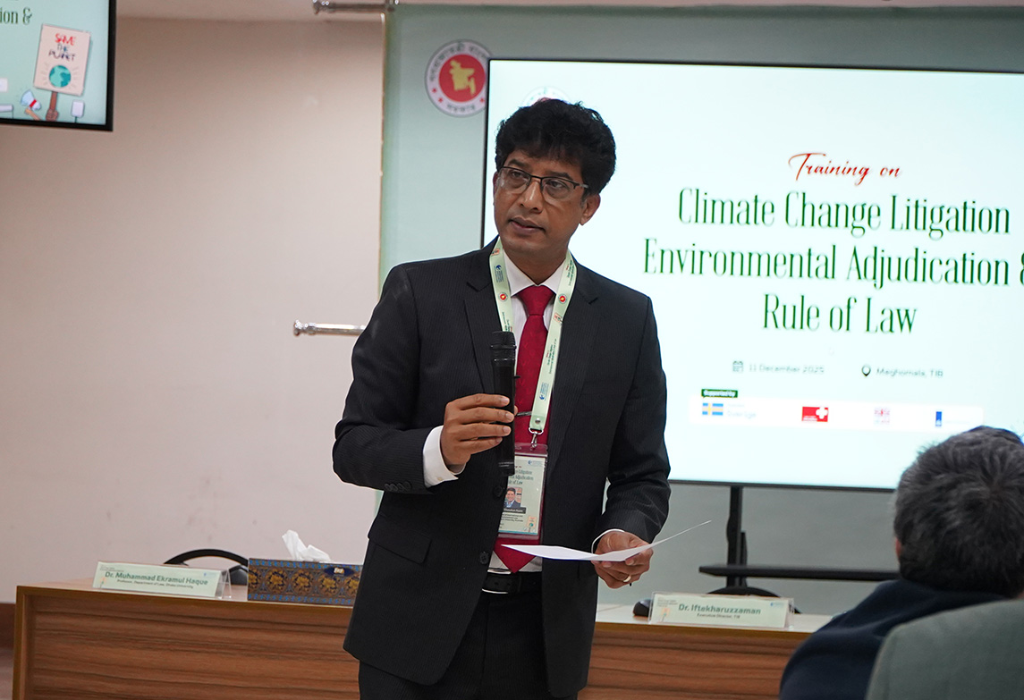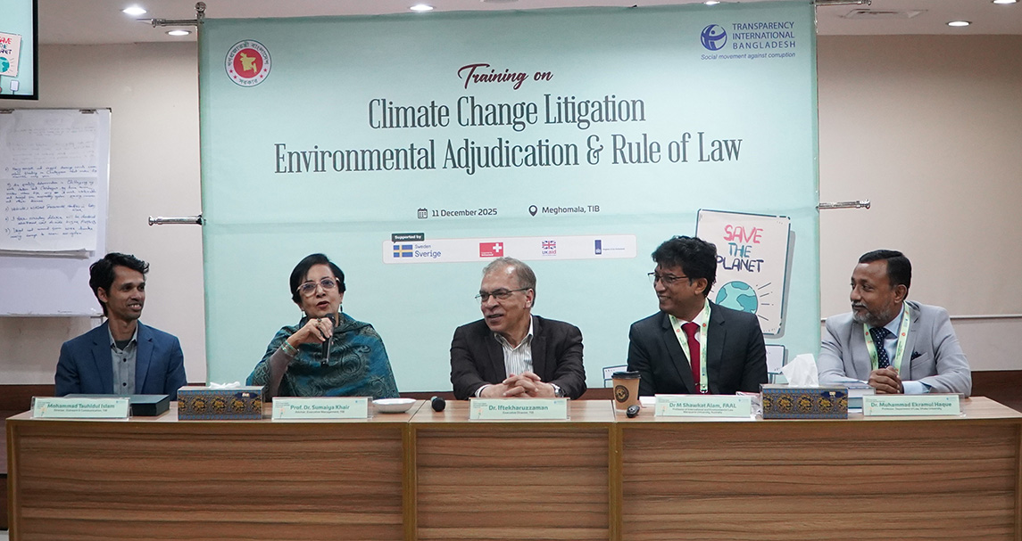 To address this knowledge deficit, Transparency International Bangladesh (TIB) convened 25 judges and government officials for a daylong training workshop on climate change litigation and environmental adjudication on 11 December at its Dhaka office. Organized in consultation with the Bangladesh Supreme Court and the Ministry of Law, the training represented a significant acknowledgment that even those charged with upholding environmental law often lack the specialized expertise to do so effectively. The workshop featured two expert trainers of law background - Professor Shawkat Alam from Australia's Macquarie University, who provided international perspectives on climate litigation, and Professor Muhammad Ekramul Haque from Dhaka University, who offered insights grounded in Bangladesh's legal framework.