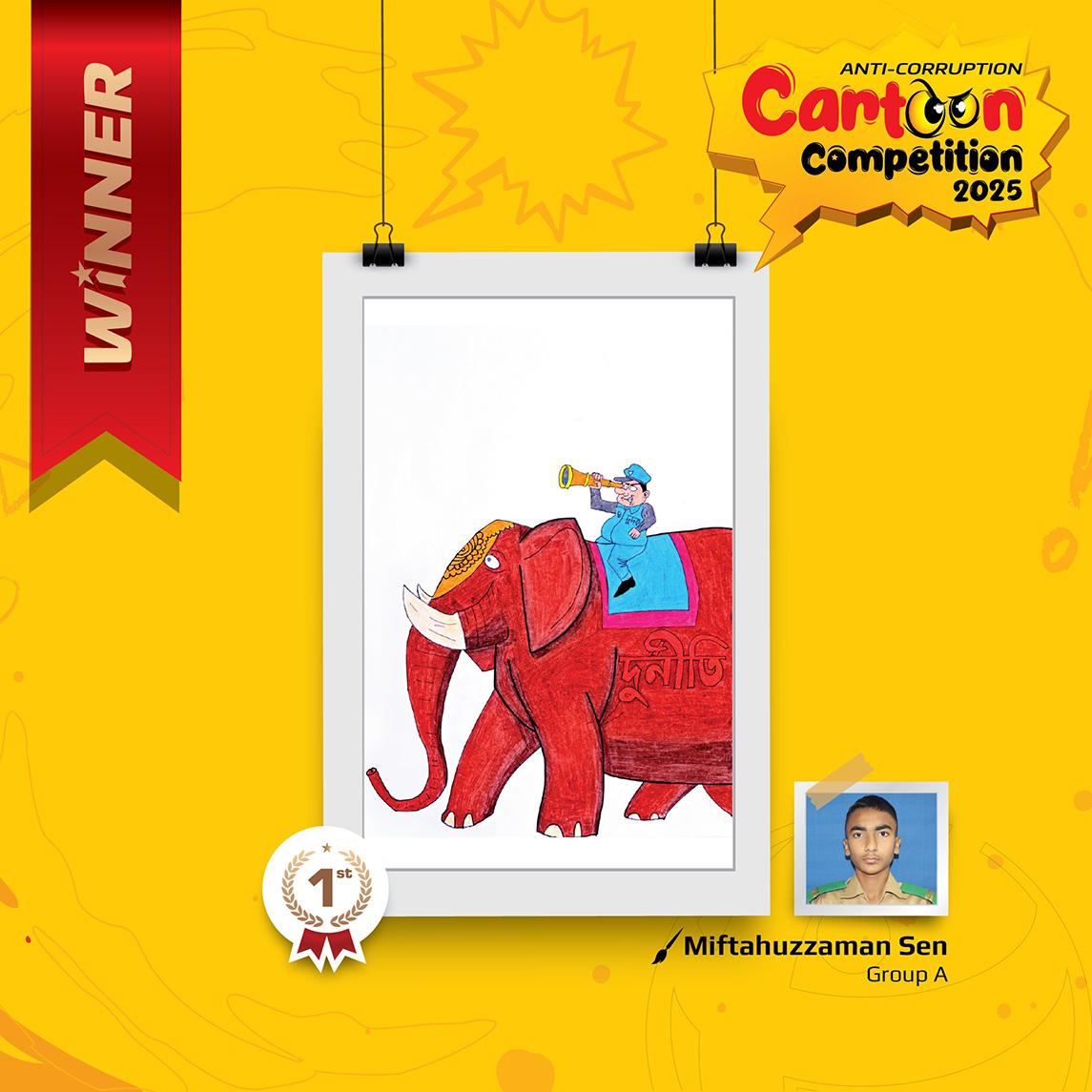 TIB Executive Director Dr. Iftekharuzzaman at the award ceremony said, “Cartoons, graffiti, and wall paintings became powerful tools in the struggle against authoritarianism. And many of these young artists have participated in or won TIB organized this competition. Their work helped demonstration the nation in the fight against a regime that silenced voices of protest. Their courage proves that the youth and their art are one of the most potent forces in the battle against corruption. The exhibition and award ceremony were not only a celebration of artistic talent but also a reflection of the youth’s growing role in addressing social injustices.”