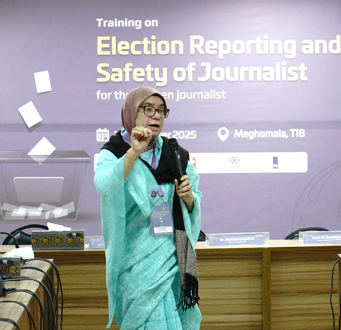 The training brought together around forty women journalists from different media outlets, creating a space where lived experience informed learning and collective resilience replaced isolation. Dr Iftekharuzzaman, Executive Director of TIB, opened the program by emphasizing the growing importance of journalist safety, particularly for women, noting that election reporting exposes them to unique vulnerabilities that require focused institutional response rather than individual endurance. Professor Dr Sumaiya Khair, Adviser, Executive Management at TIB, encouraged participants to actively engage throughout the sessions, reinforcing that meaningful capacity building must reflect real-world challenges. Mohammad Tauhidul Islam, Director of Outreach and Communication at TIB, facilitated the opening session.
