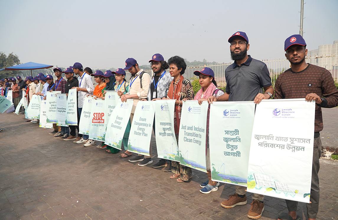 The United Nations General Assembly proclaimed the International Day of Clean Energy in 2023, explicitly emphasizing "a just, inclusive, and sustainable global transition," language that implicitly demands governance transparency and stakeholder participation. On the occasion of the International Day of Clean Energy 2026, TIB observed the day in Dhaka and across the country to place energy governance at the center of the national conversation. As part of the observance, TIB organized a human chain in front of the National Parliament Complex to clearly articulate reform-oriented demands for a transparent, accountable, and renewable energy–focused policy framework.