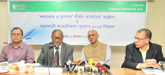 TI-Bangladesh's Executive Director Dr Iftekharuzzaman moderated the session where the Prime Minister's International Affairs Adviser Professor Dr Gowhar Rizvi graced the occasion as chief guest, chaired by Dr Akbar Ali Khan, the Member, Board of Trustees, TIB. Noted journalist and Chief Editor of ATN Bangla Monjurul Ahsan Bulbul presented the key-note on 'Media and Governance'. Media personality Muhammad Jahangir, Professor Dilara Chowdhury and Executive Director of Management Resource Development Initiative (MRDI) Hasibur Rahman were among others who participated in the discussion.
