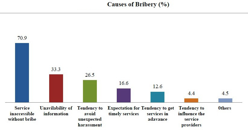 Aimed at measuring the nature and extent of corruption and harassment experienced by the households in getting various public services, the survey report also put forward a number of recommendations to prevent and control corruption. These included, among others: bringing corrupt people to justice; ensuring transparency and accountability in service-providing institutions by strictly adhering to code of conduct, enhancing participation and communication of local people in service sectors; arranging public hearing; providing penalty or reward for employees according to their performance, strengthening social movement to prevent corruption and increasing manpower, infrastructure, and logistics at various service providing institutions.