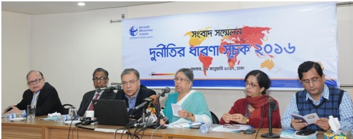 Compared to 2015, Bangladesh has slightly improved its score and ranking in the Corruption Perceptions Index (CPI) 2016 releasedon 25 January 2017 by Transparency International. On a scale of 100, Bangladesh has scored 26 among 176 countries, an increase by one point compared to 25 of CPI 2015. Counting from below, the ranking has moved up two steps from 13 in 2015 to 15 Bangladesh has been placed at 145th position from the top, slightly by six positions compared to 139th position in 2015. All South Asian countries – Bhutan, India, the Maldives, Nepal, Pakistan and Sri Lanka scored more and ranked higher than Bangladesh in CPI 2016, except Afghanistan.