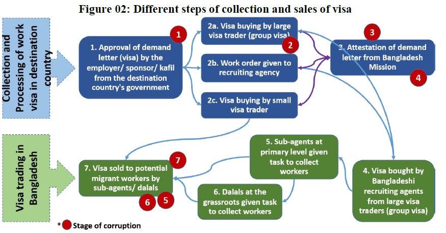 There are allegations that almost every stage in VISA processing entertains unauthorised transaction of money. This situation is instigated by the uncontrolled VISA trading which creates extra expenditure burden over the migrant workers. As a result, Bangladesh is failing to gain the returns from the labour migration at the expected level. High cost in labour migration instigates illegal overseas migration, which leads to putting the workers into a domain where there is a strong possibility to be declared as illegal migrants in the destination countries.