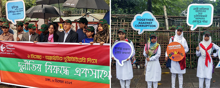 9 December marks the International Anti-Corruption Day (IACD). To celebrate IACD 2017, Transparency International Bangladesh’s (TIB) organized a number of people and youth engagement activities promoting the message: Together against corruption. TIB called upon the Government to create enabling environment for the anti-corruption fighters, so that anti-corruption fighters and researchers can smoothly broaden the anti-corruption social movement. Those entrusted to fight corruption such as the Judiciary, the Anti-Corruption Commission and the law-enforcing agencies are able to discharge their duties without fear or favor, TIB demanded.