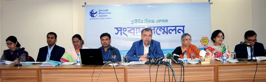 To reveal the report findings and recommendations, a Press Conference was organized by Transparency International Bangladesh (TIB) at Dhaka office on 17 May 2018. TIB Chairperson Advocate Sultana Kamal, Executive Director Dr. Iftekharuzzaman, Adviser Executive Management Professor Dr. Sumaiya Khair, Director-Research & Policy Mohammad Rafiqul Hassan were present at the press conference. TIB Deputy Programme Managers Nihar Ranjan Roy and Morsheda Aktar with Assistant Program Manager Amit Sarker of Research & Policy division presented the summary of the report accompanied by Program Manager Juliet Rossete.