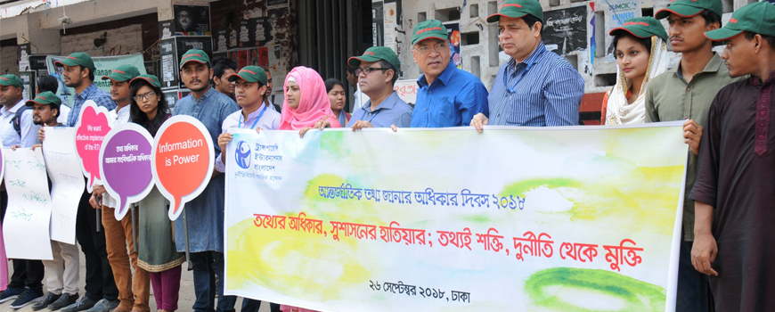 Transparency International Bangladesh (TIB) observed the International Right to Know Day, 2018 with a call upon the government to review the hastily passed Digital Security Act ignoring widespread protests and concerns from journalists, media, rights activists, civil society and different national and international quarters. Observing the legislation contradictory to the true spirit of Right to Information (RTI) Act 2009, the Liberation War and freedom of expression, TIB also urged the president not to assent to the bill at this stage terming some of its provisions risky for journalists, media, researchers as well as for the masses and push it back to the Parliament for reviewing the controversial provisions.
