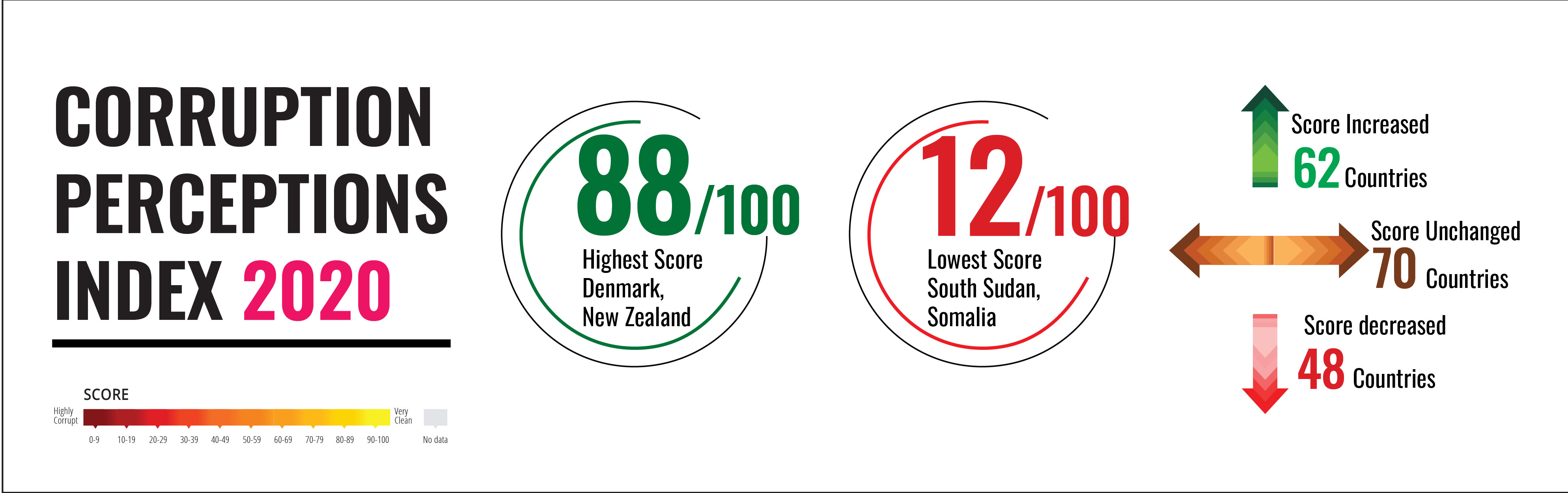 According to CPI 2020, countries with more pervasive corruption are least equipped to handle crises, like the COVID-19 pandemic. Besides, corruption undermines the global health response to COVID-19 and contributes to a continuing crisis of democracy.