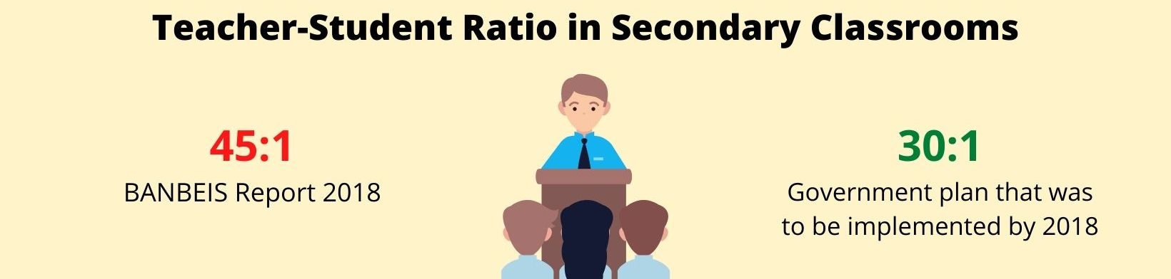 As the system lacks a standardised evaluation protocol, there are deficiencies in understanding what the students are learning in classrooms, which impedes policymakers from establishing research-backed educational infrastructures. In addition, according to a 2018 report by the Bangladesh Bureau of Educational Information and Statistics (BANBEIS), the teacher-student ratio could not be brought down as per government expectations.