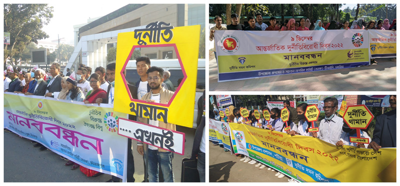 Anti-corruption activists participated in human chains organised jointly by the Anti-Corruption Commission (ACC) and TIB. The human chains also chanted slogans calling for the end of irregularities and corruption in all sectors. The social movements against corruption also involved school children from different localities.