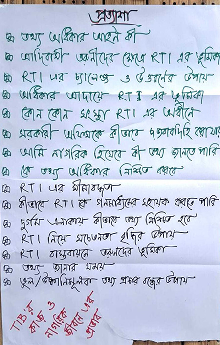 As the program commenced, Run Ley Mro eagerly began asking questions about the various aspects of the Right to Information (RTI) and how to utilize it effectively. From the very start, her enthusiasm was palpable as she actively engaged in every session. Her motivation was clear: she wanted to empower her community in Bandarban with the knowledge of RTI.
