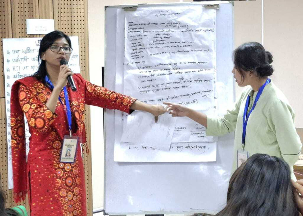 One of the most engaging aspects of the workshop was the group learning session, where participants were divided into four groups. Each group gave a presentation on how to apply for information under the RTI Act. The participants discussed real-life challenges they face when trying to access information and sought clarification on different aspects and benefits of the Act. They also received insights into various sections of the Act and the role of the Information Commission, which is responsible for implementing the Act.