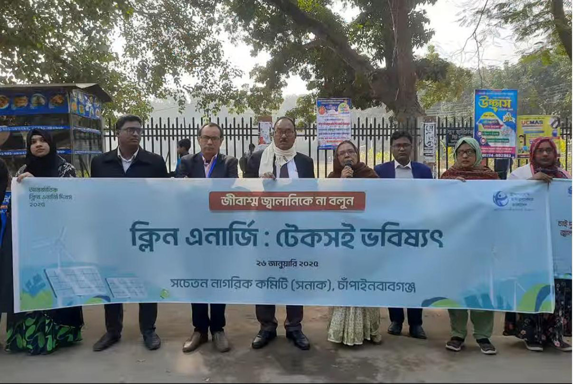 Marking the "International Clean Energy Day 2025", TIB on 26 January 2025 organized a human chain in front of the National Parliament in Dhaka, urging the government to transition from fossil fuels and achieve 100% renewable energy by 2050. TIB emphasized eliminating policy capture, conflicts of interest, and corruption in the energy sector. TIB-inspired groups—Committee of Concerned Citizens (CCC), Active Citizens Group (ACG), and Youth Engagement and Support (YES)—organized various activities, including human chains, rallies, road shows, and public discussions across 45 upazilas and districts.