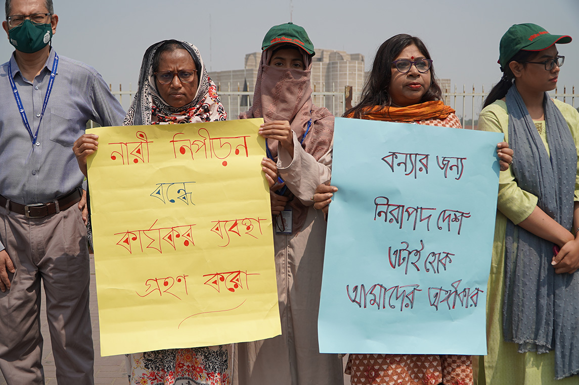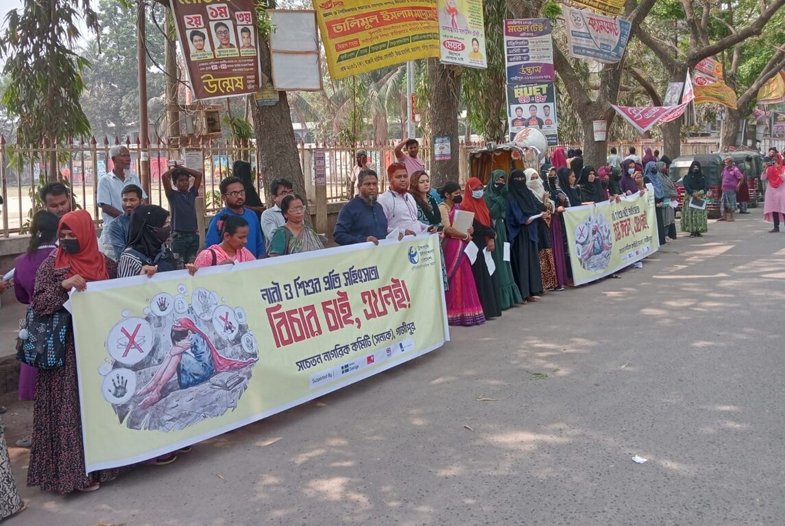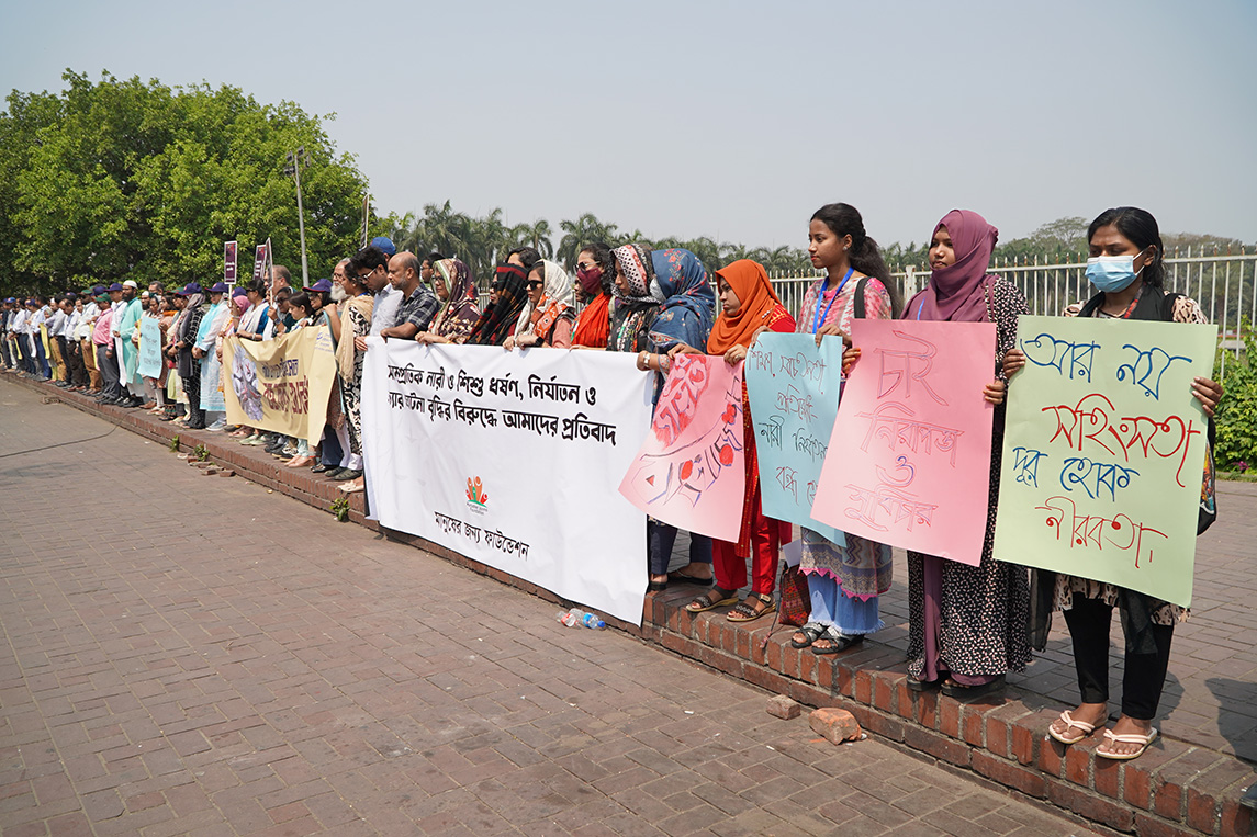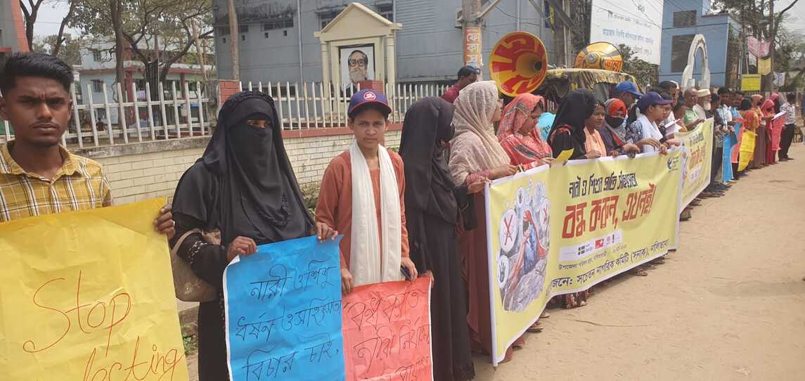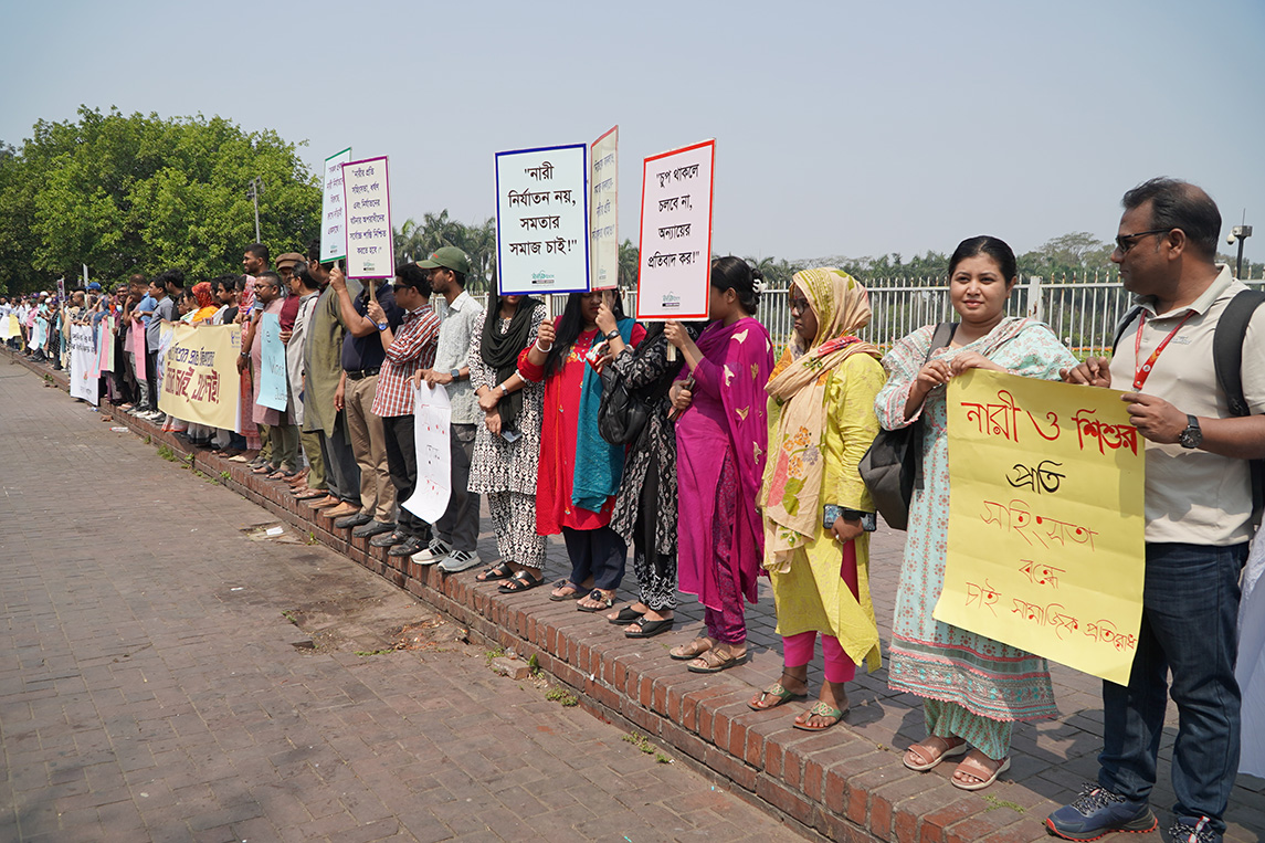 At the grassroots level, an unprecedented 4,000 citizens joined Committees of Concerned Citizens (CCCs) in human chains across Bangladesh on March 16, demanding an end to violence against women and children.